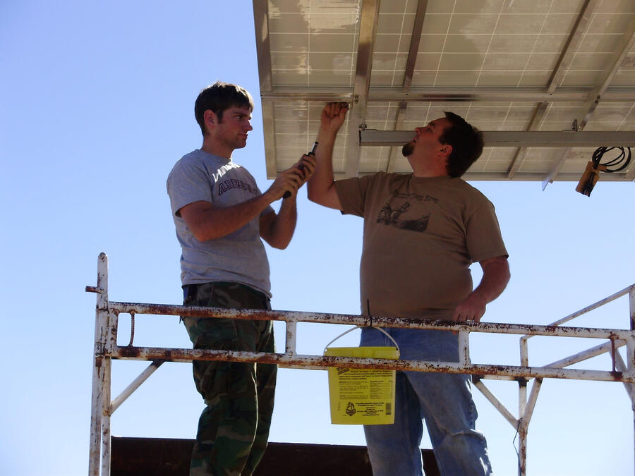 Joshua is passionate about solar, electricity and family business. The good old-fashioned service that Bruce has been known for since 1995 is still at the core of the company. Joshua is proud to take the torch and keep serving our community.Photo: Joshua and Bruce show the solar well pump they installed at an orphanage is Zimbabwe in 2009.
